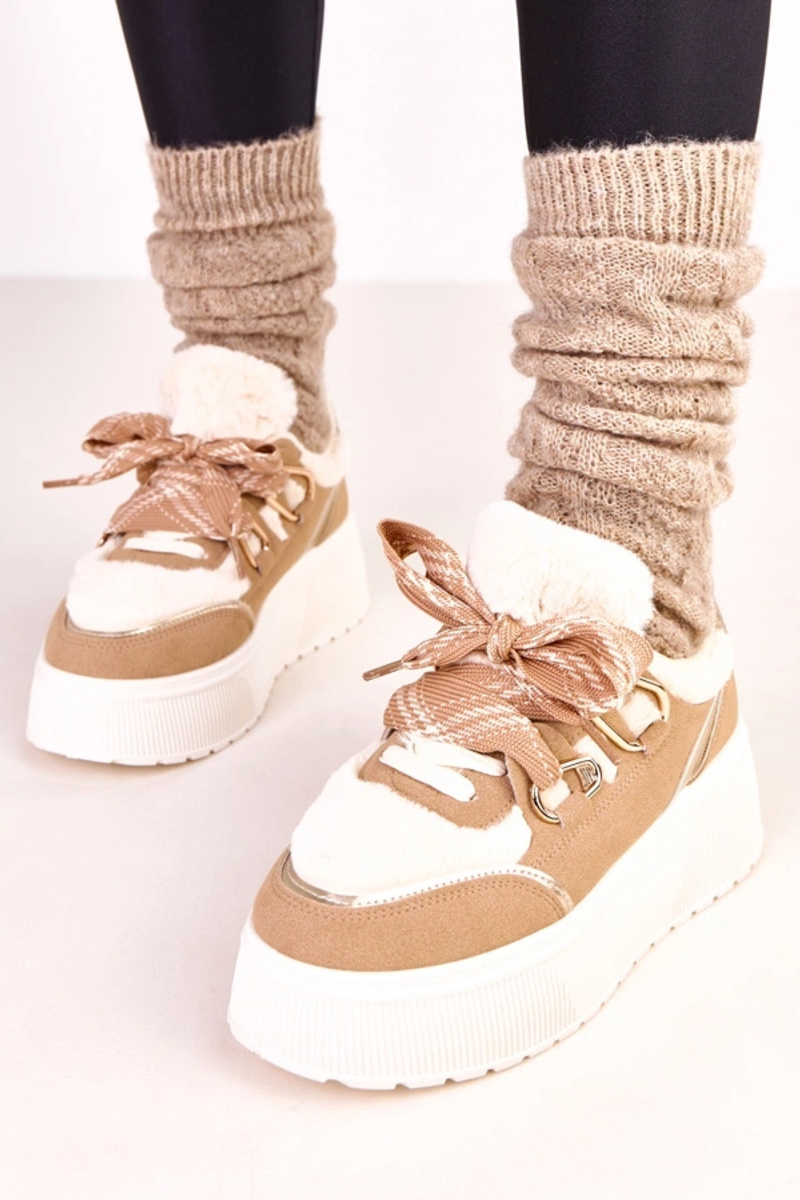 Smilšu krāsas siltie sporta apavi uz platformas Deena