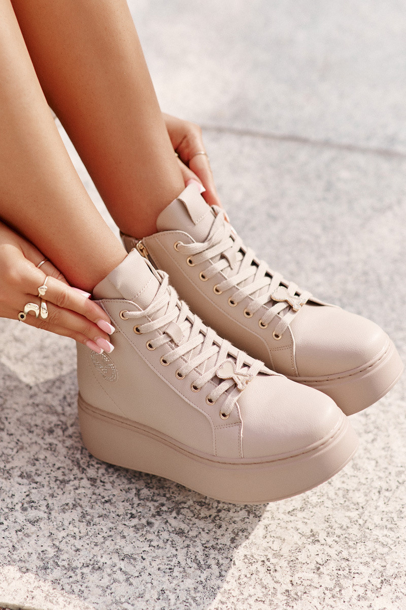 Augsti ādas sporta apavi sievietēm ar platformu Vinceza 66707 smilšu krāsā