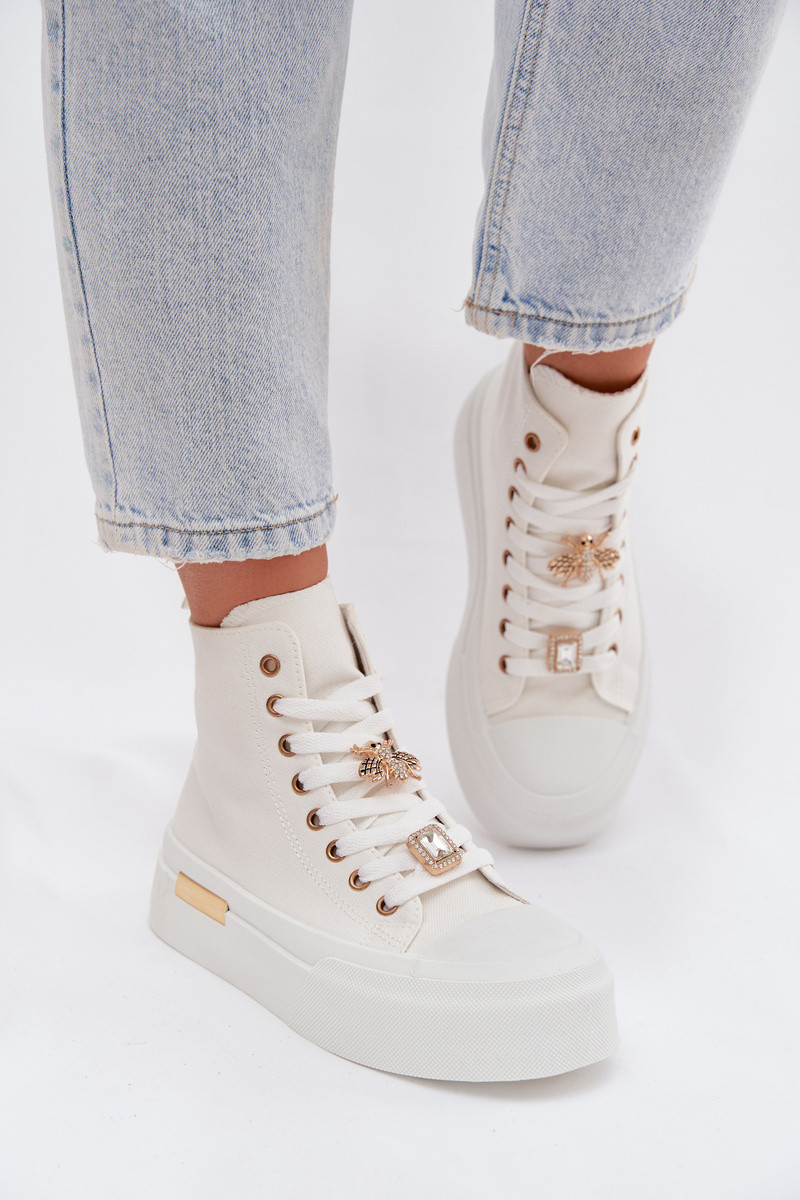 Balta krāsas brīvā laika apavi ar platformu un rotājumiem „Gracella"