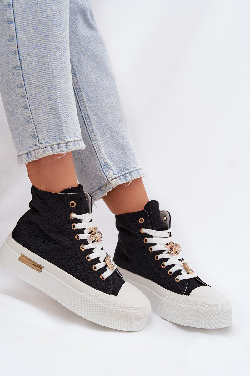 Melnā krāsas brīvā laika apavi ar platformu un rotājumiem „Gracella"