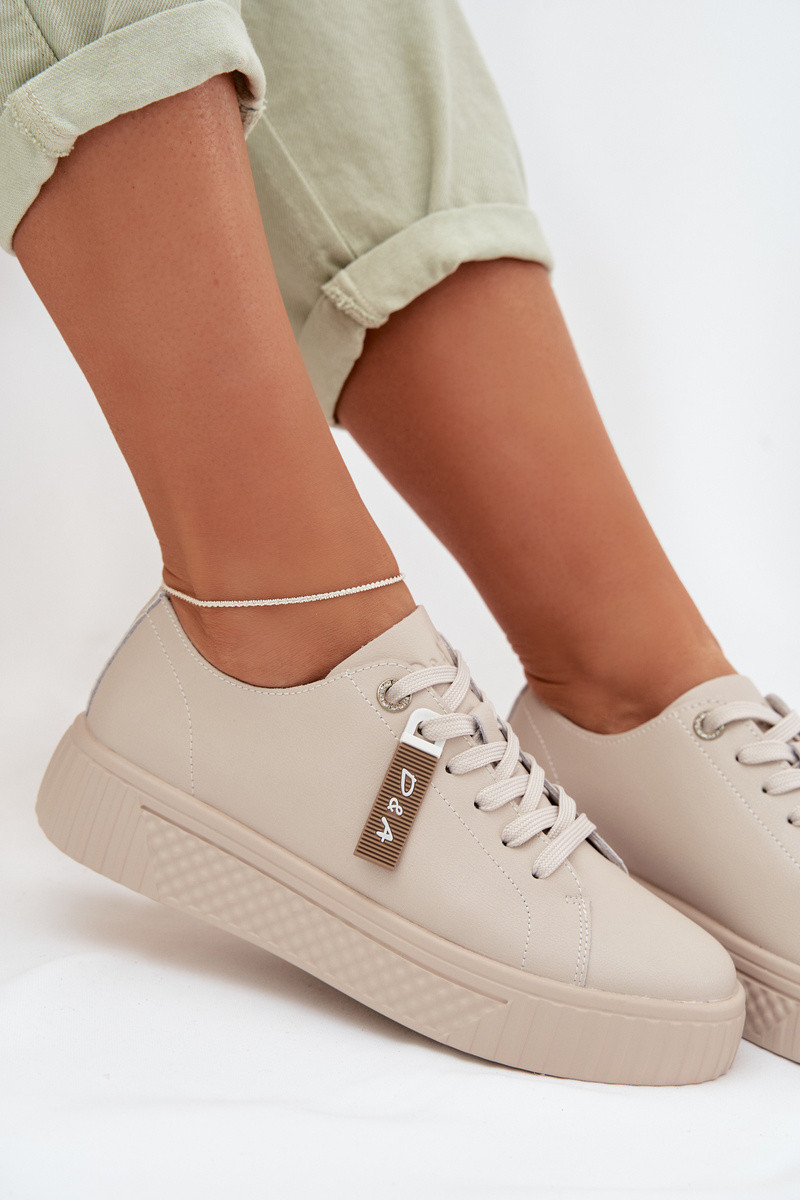 Sneakers modeļa apavi SieviešuIeslēgtsturalnej Skóry D&A GR61-5591 smilšu krāsas