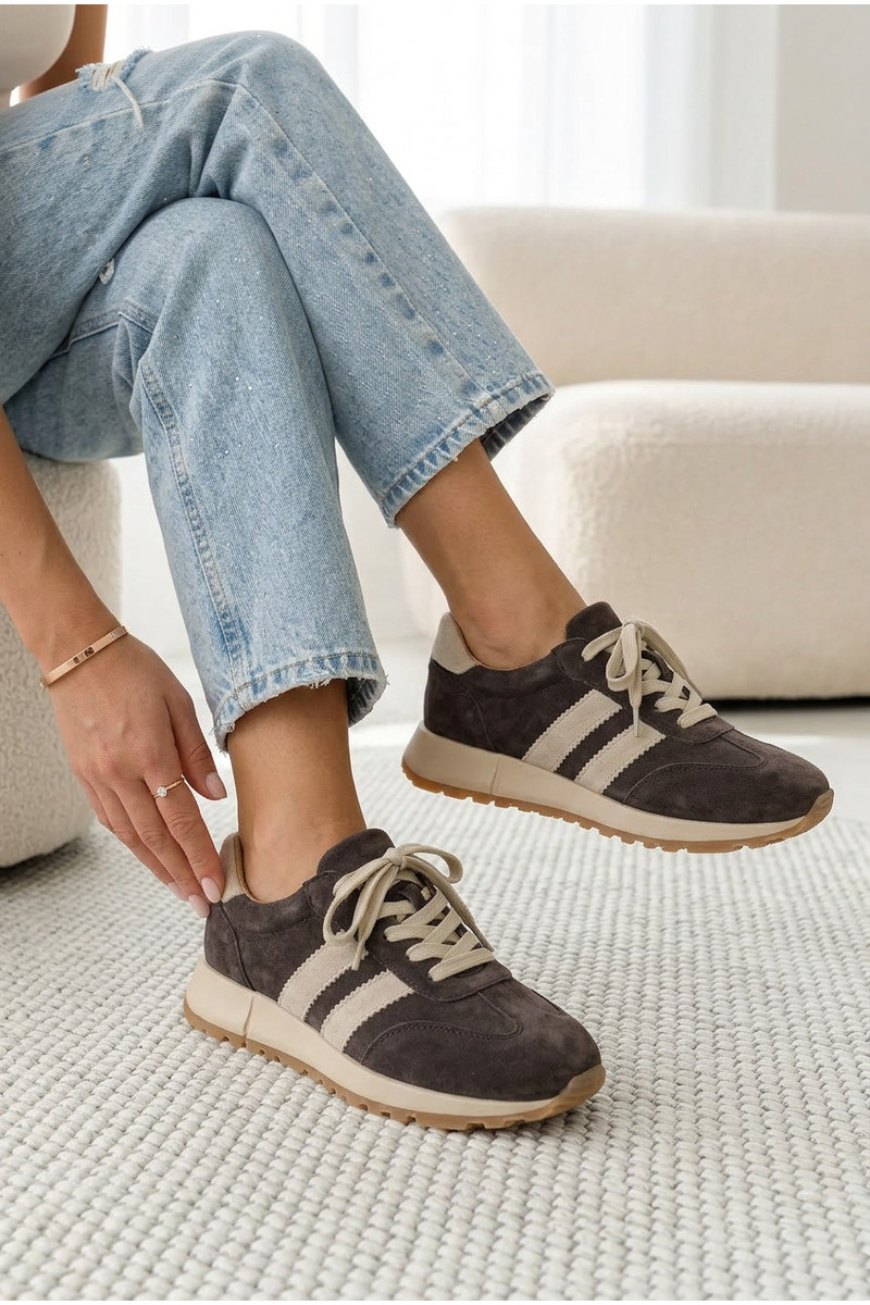Sieviešu sporta apavi no mākslīgās ādas brūnā krāsā