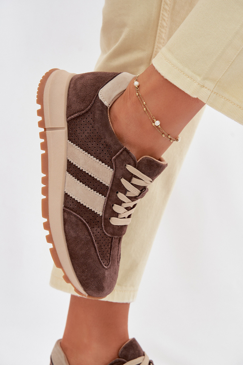 Sieviešu sporta apavi no mākslīgās ādas brūnā krāsā