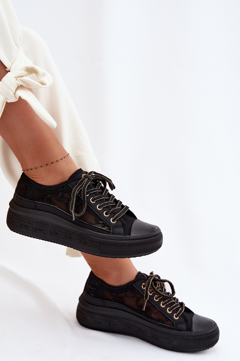 sieviešu puszābaki ar mežģīnēm ar platformu Lee Cooper LCIN-26-44-4479 melnas krāsas