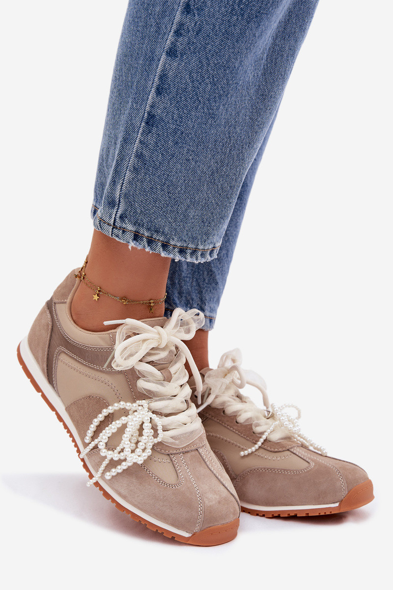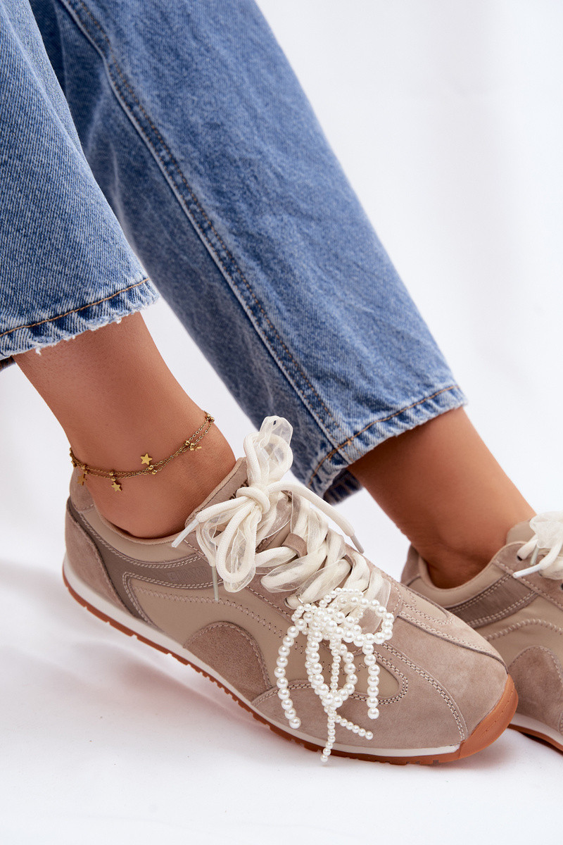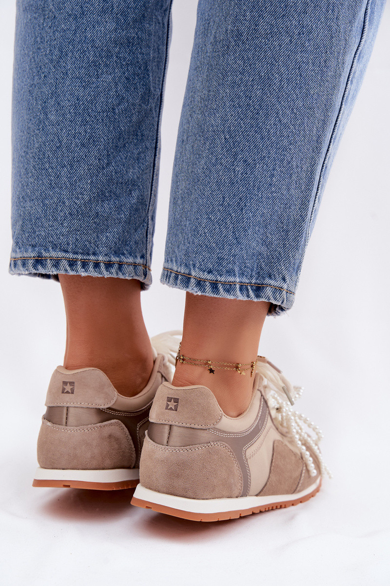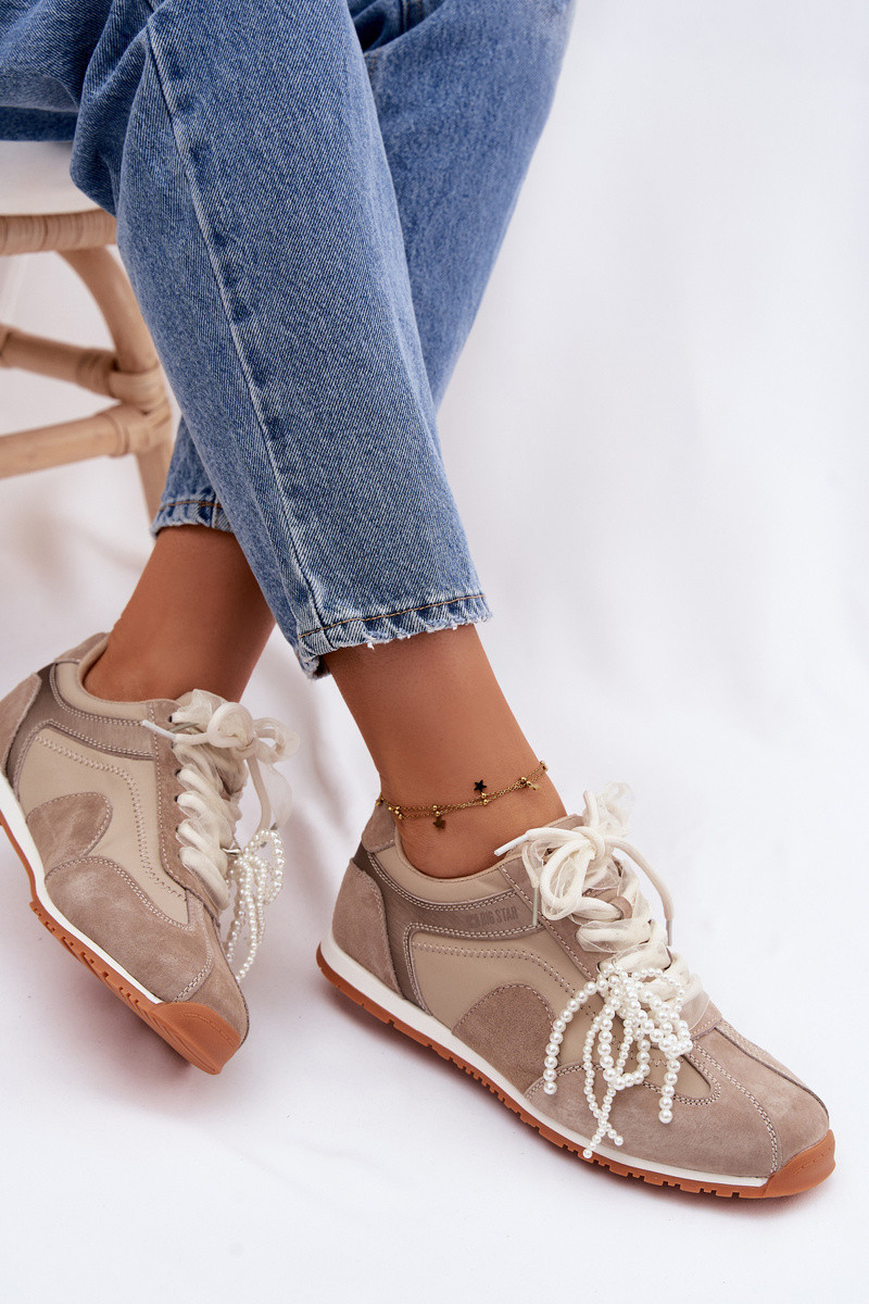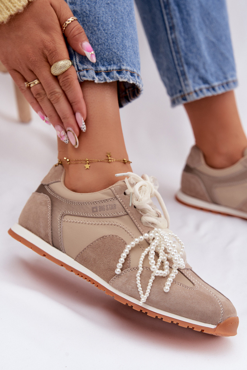 Āda zamšādas Sneakers modeļa apavi Sieviešu Big Star TT274677 smilšu krāsas