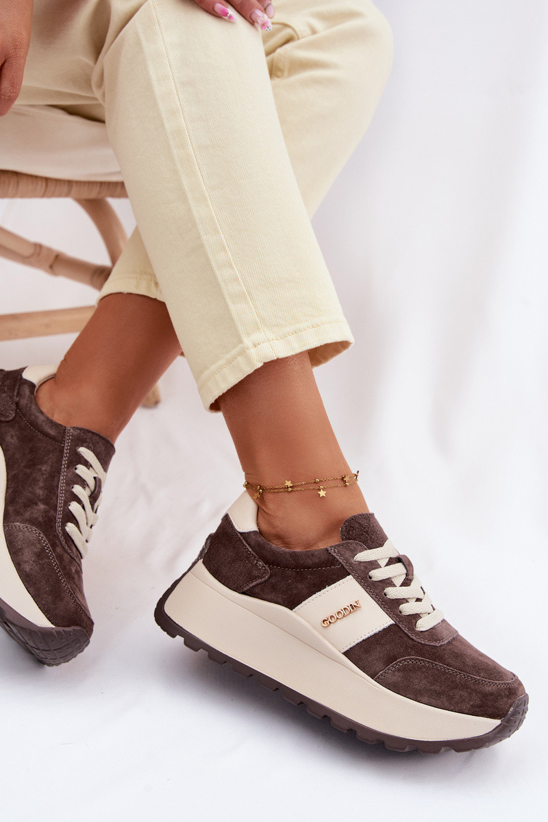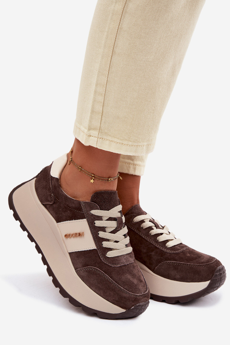Sneakers modeļa apavi Sieviešu ar platformuIeslēgtsturalnego zamšādasu CzekoladoIne Rosinae