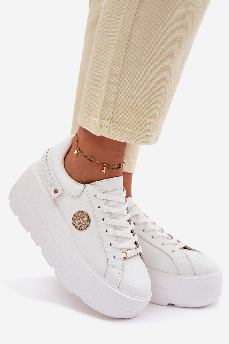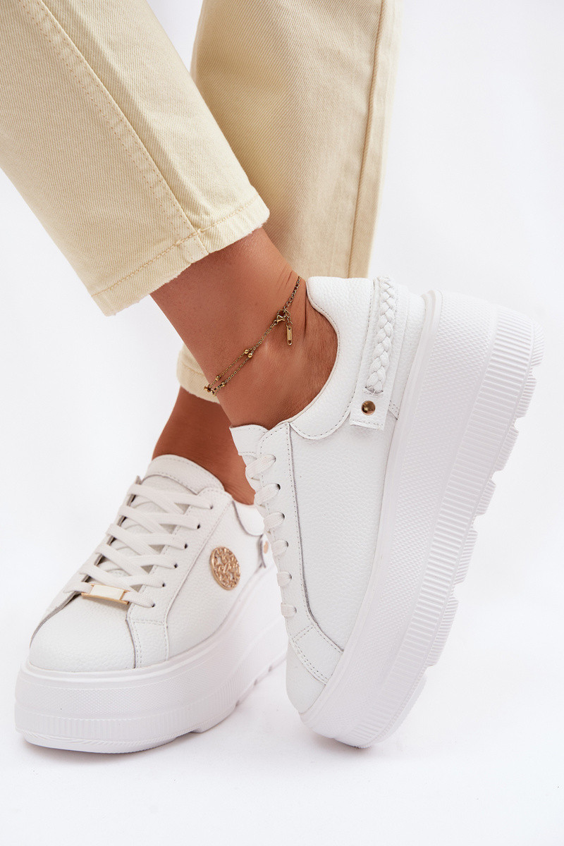 Ādas sporta apavi sievietēm ar platformu D&A LR61-7095 baltā krāsā