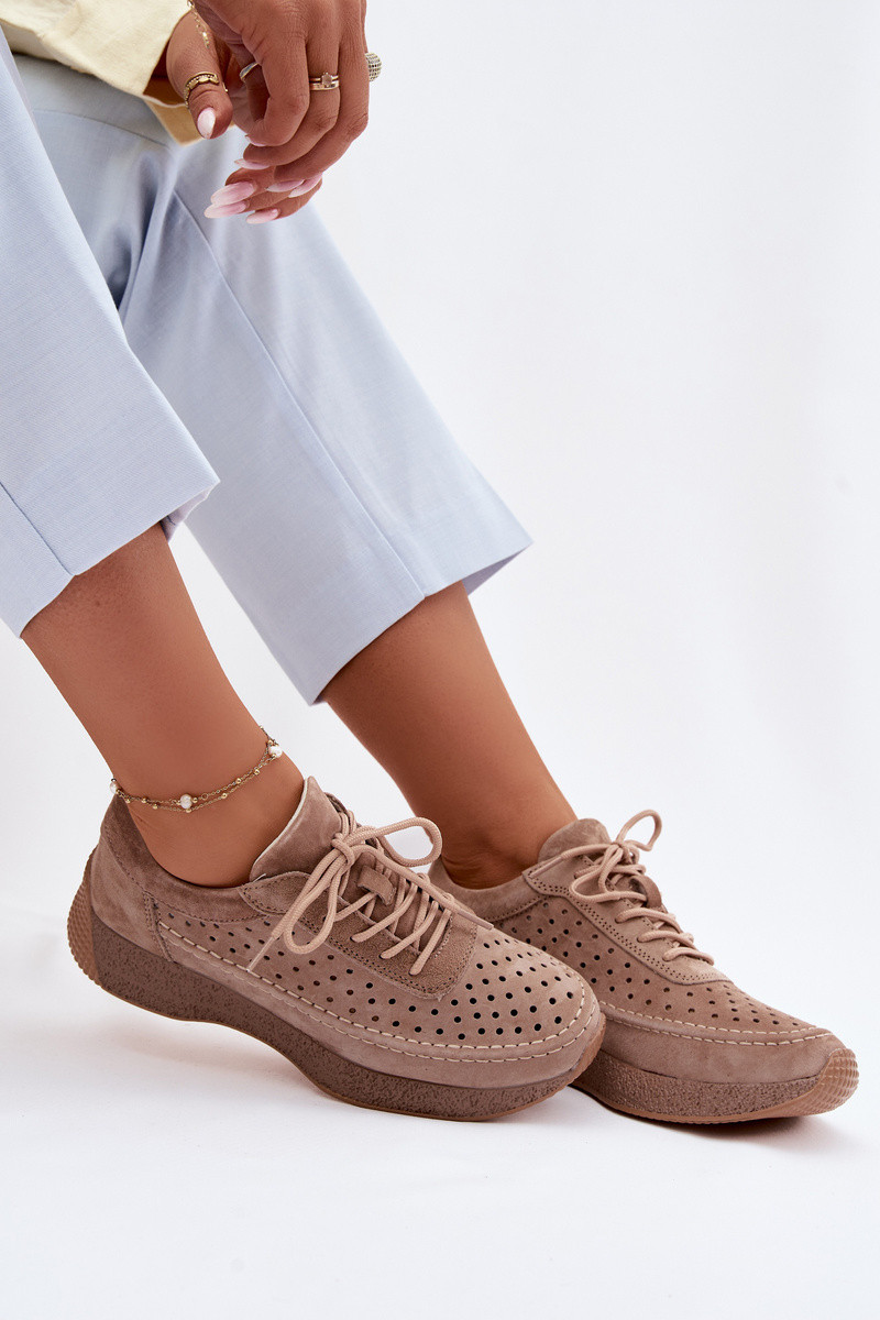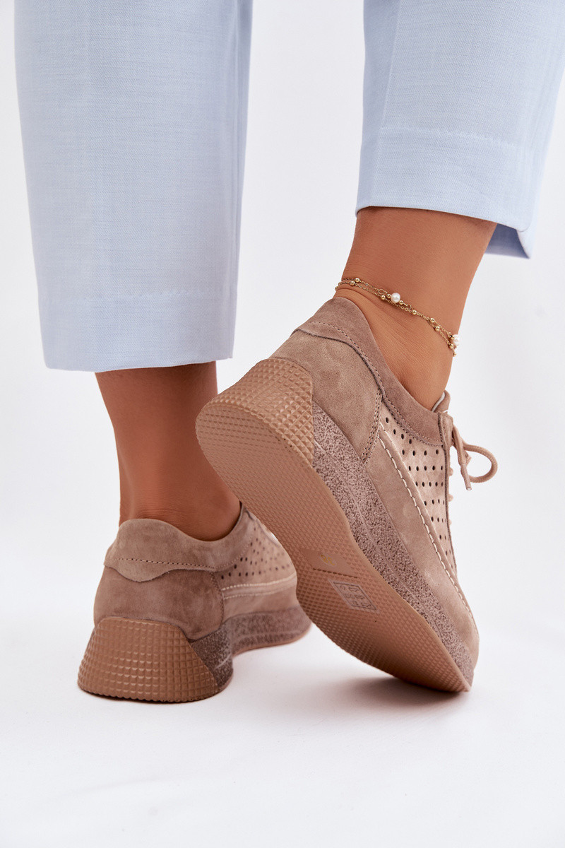 Ādas sneakers stila sieviešu kurpes ar caurumu elementiem Sergio Leone SP-013 brūnas krāsā