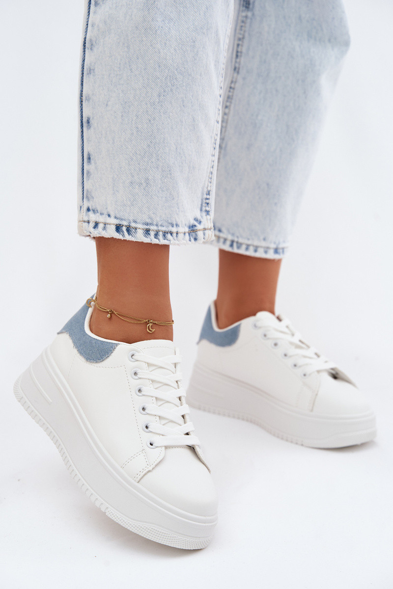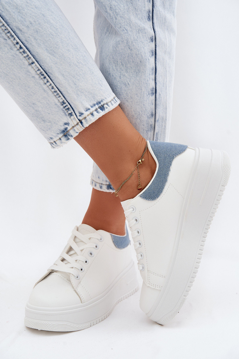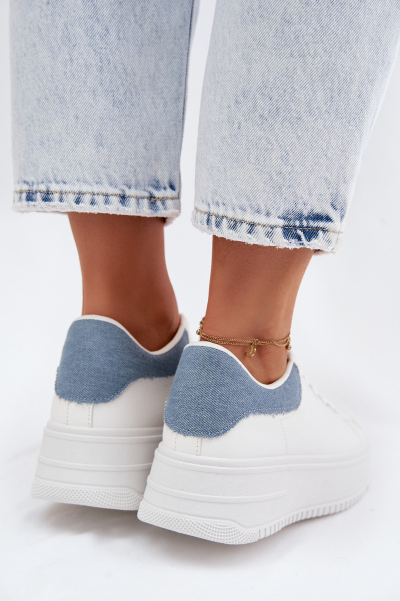Baltas un zeltains sieviešu sporta apavi ar platformu un spīdumu no mākslīgās ādas Calinae