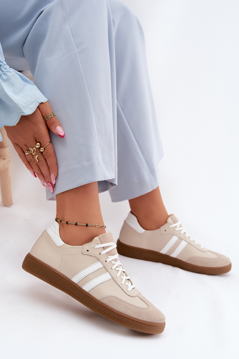 Zazoo N1068 ādas zemas sporta apavi sievietēm smilšu krāsā