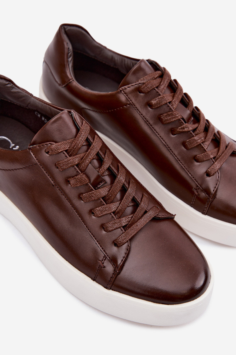 Sneakers modeļa apavi vīriešiem no eko ādas tumši brūnas krāsas Velton