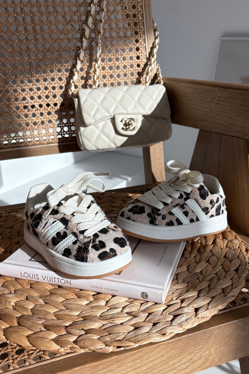 Bērnu sporta apavi Sneakers modeļa ar leopardu rakstiem, smilšu krāsā, Amelle