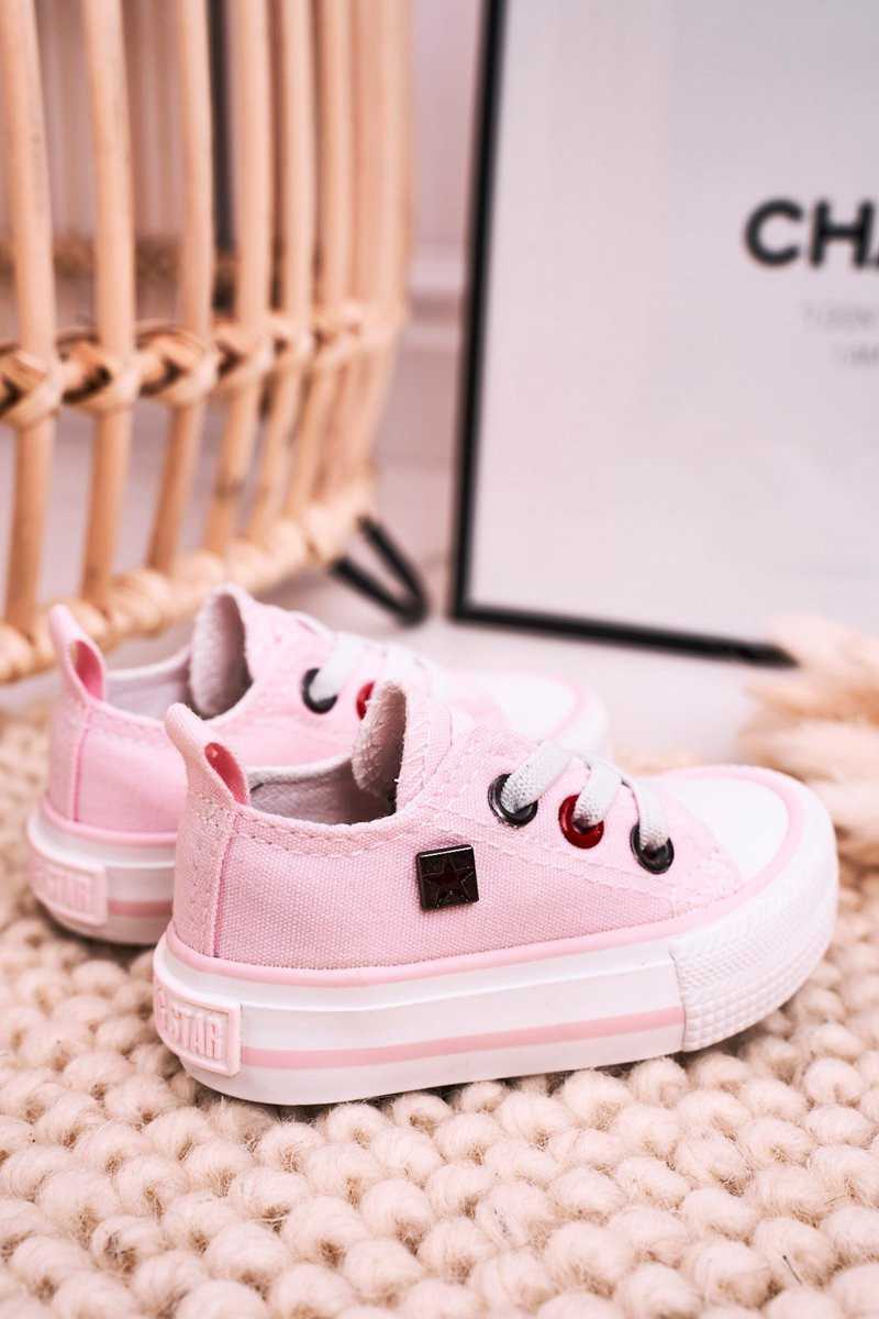 Bērnu apavi Klasiska modeļa sporta apavi ar līdzenu zoli BIG STAR HH374197 Rozā krāsas