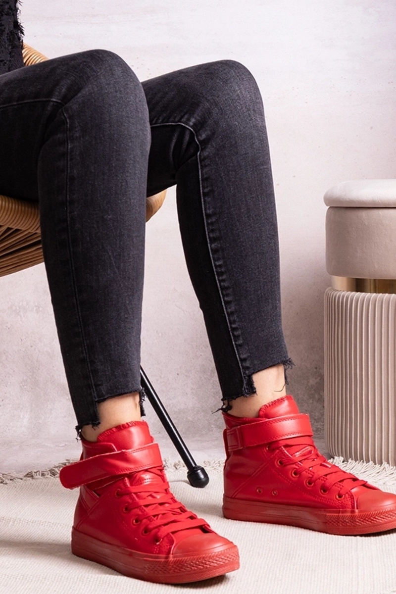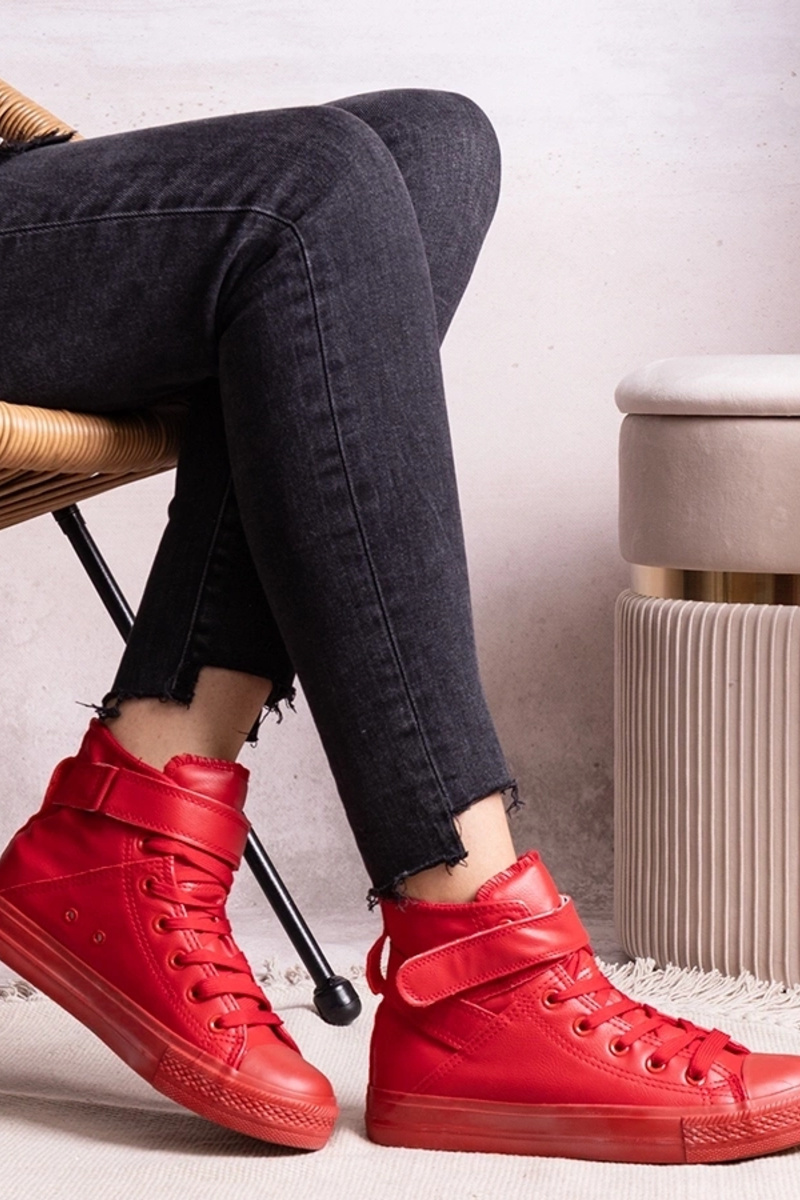 Sarkani augstie sporta apavi no mākslīgās ādas Bonbonita