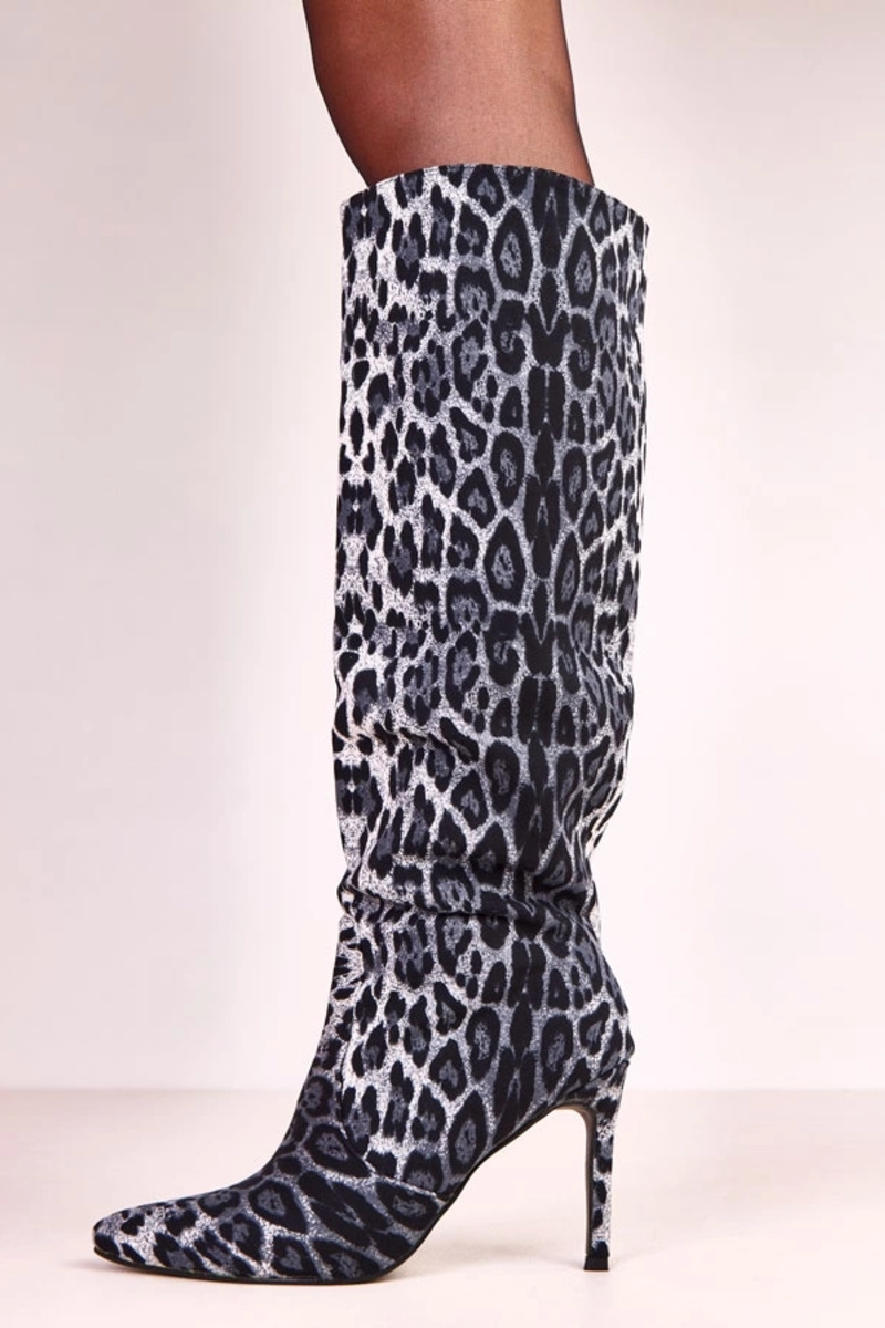 Melni leoparda raksta ilgi zābaki uz plāna papēža Adrienne