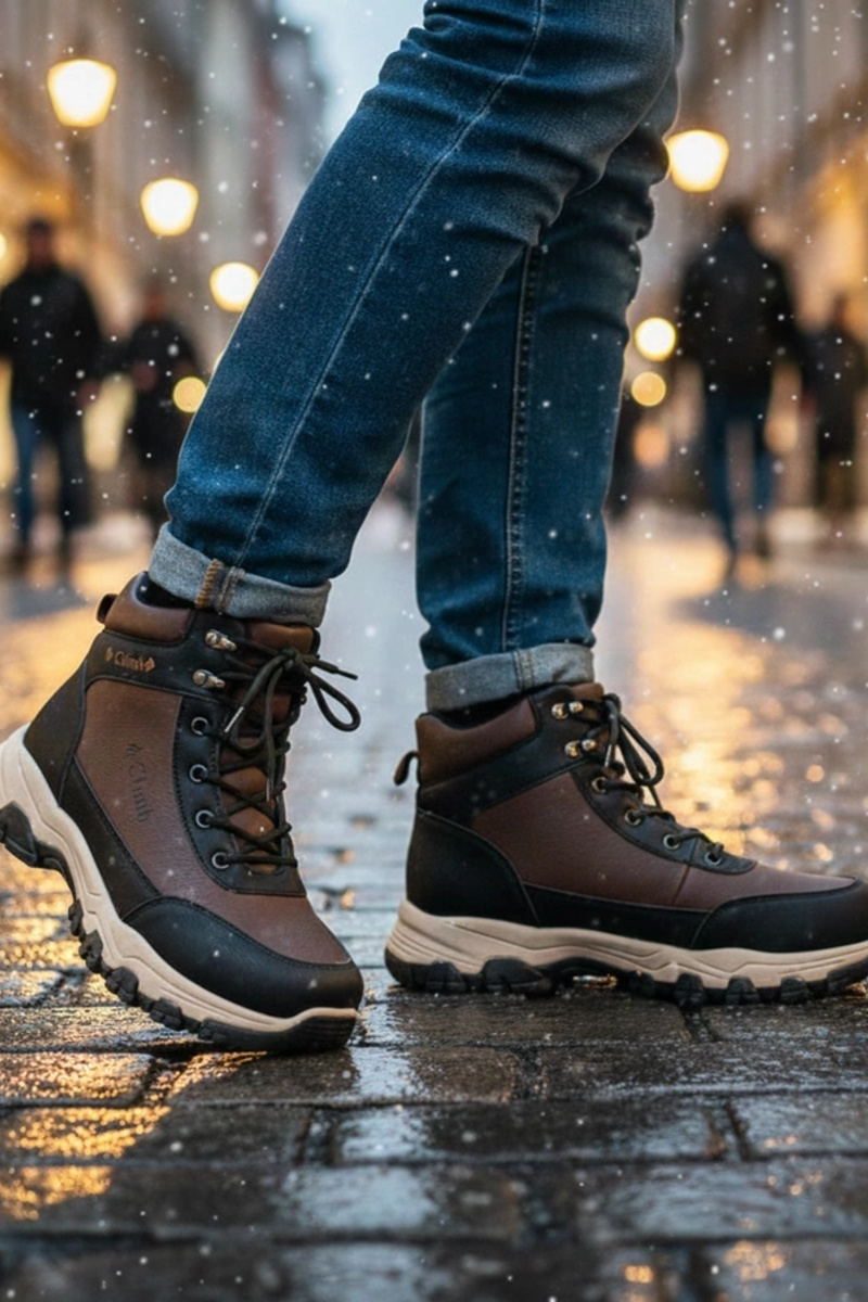 Brūni vīriešu siltinātie zābaki uz paceltas zoles Pedro