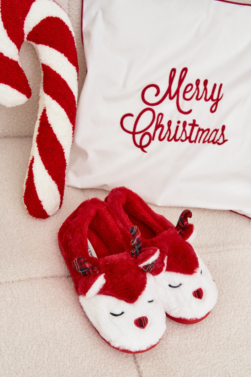 Sarkanas Orsella Ziemassvētku sieviešu čības ar kažokādu un ziemeļbriežu motīviem
