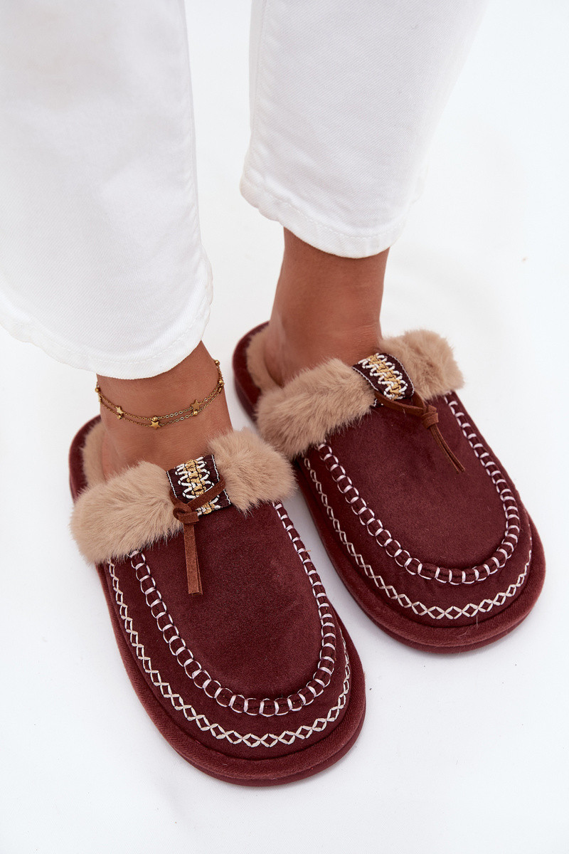 Čības Sieviešu ar kažokādu I Haftem bordo krāsas Perivelle