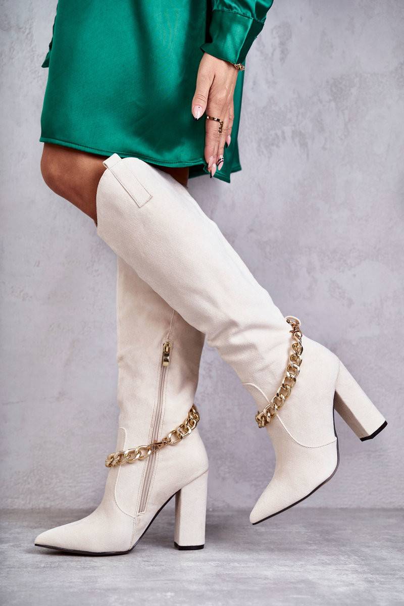 zamšādas siltināti garie zābaki Ziloņkaula krāsas Jasmin