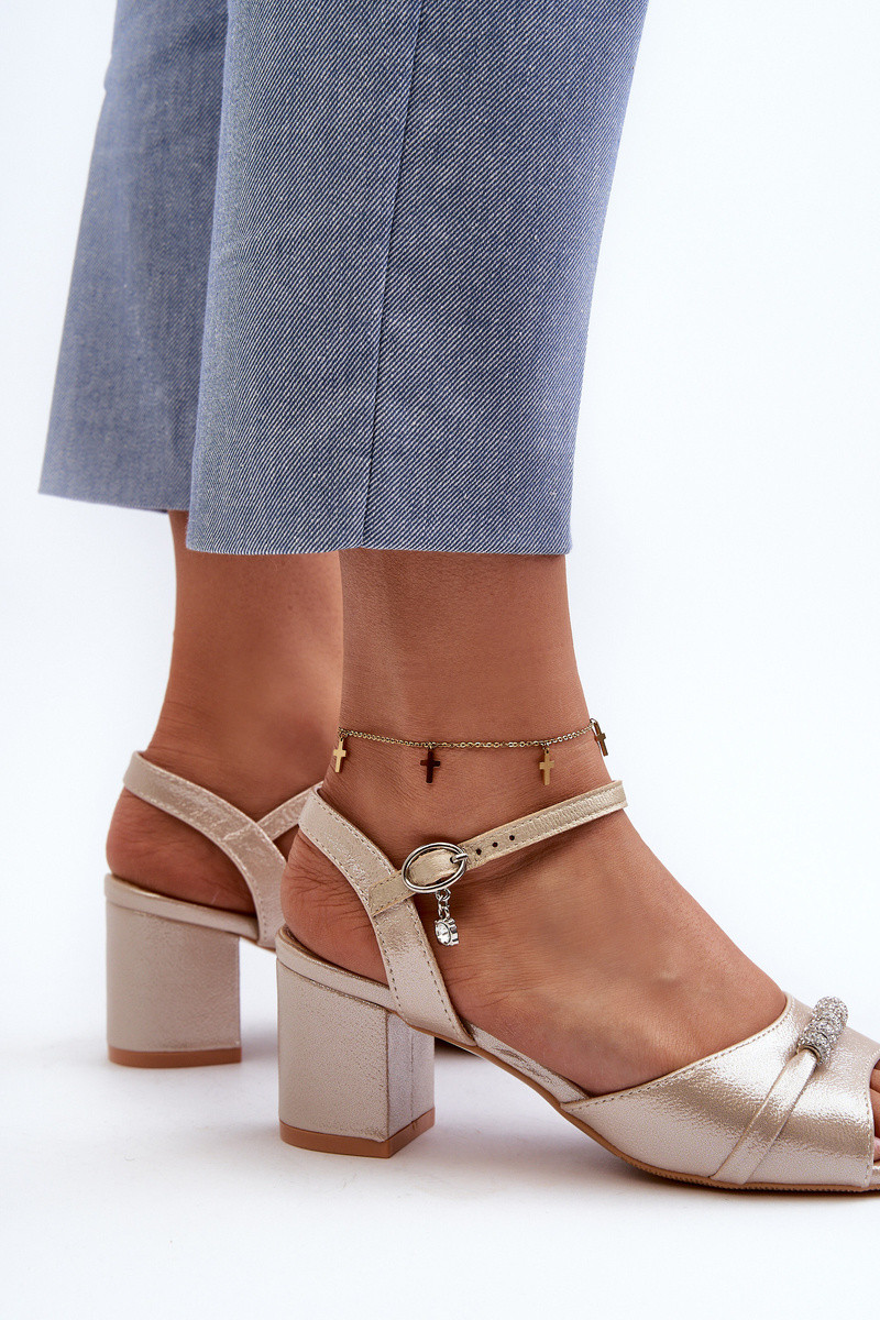 Sieviešu sandales no mākslīgās ādas ar papēžiem un skaistiem zelta akcentiem Narhi