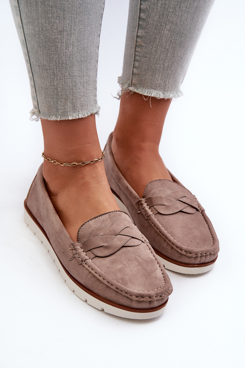 Sieviešu mokasīni no mākslīgā zamšas, tumši smilšu krāsā Nestalia