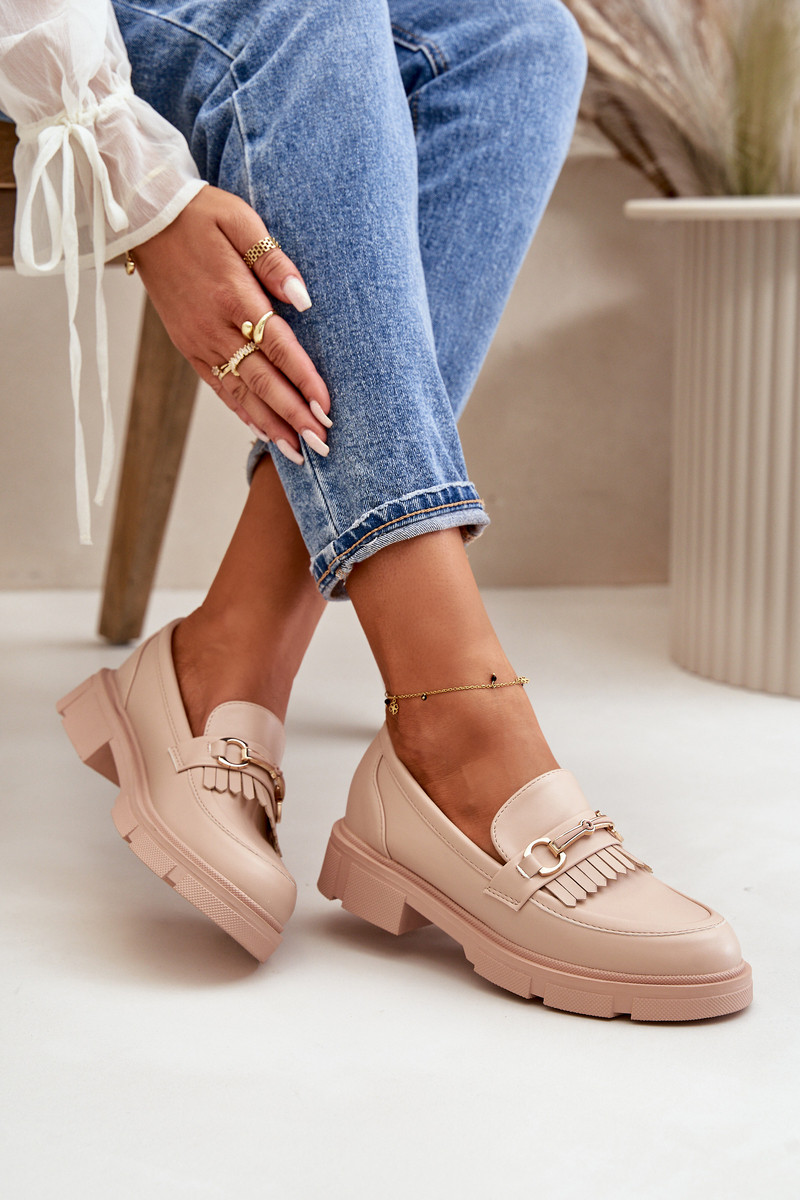 Sieviešu mokasīni ar ornamenti no mākslīgās ādas smilšu krāsā Tialorae