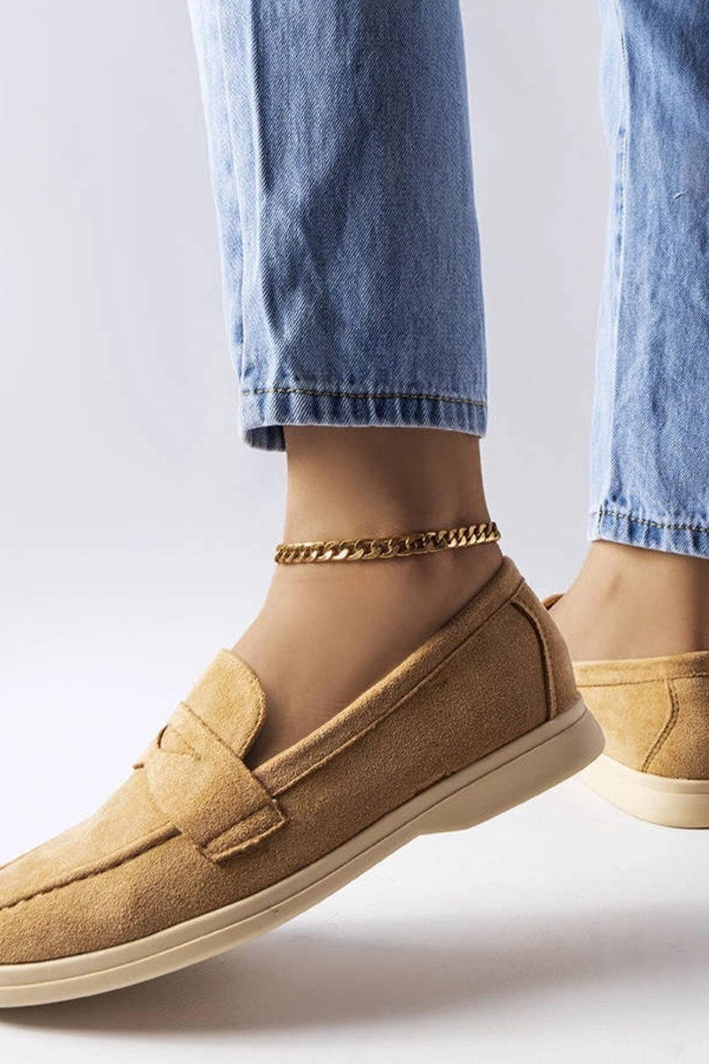 Smilšu krāsas mākslīgās zamšādas baleta apavi Ferragus