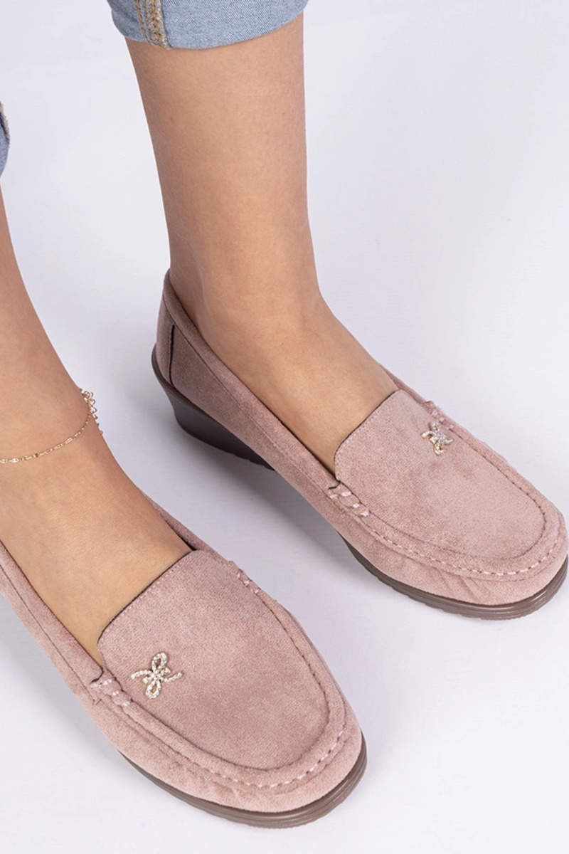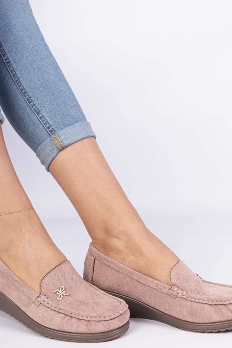 Rozā sieviešu mokasīni uz platformas no mākslīgā zamša Sarimi
