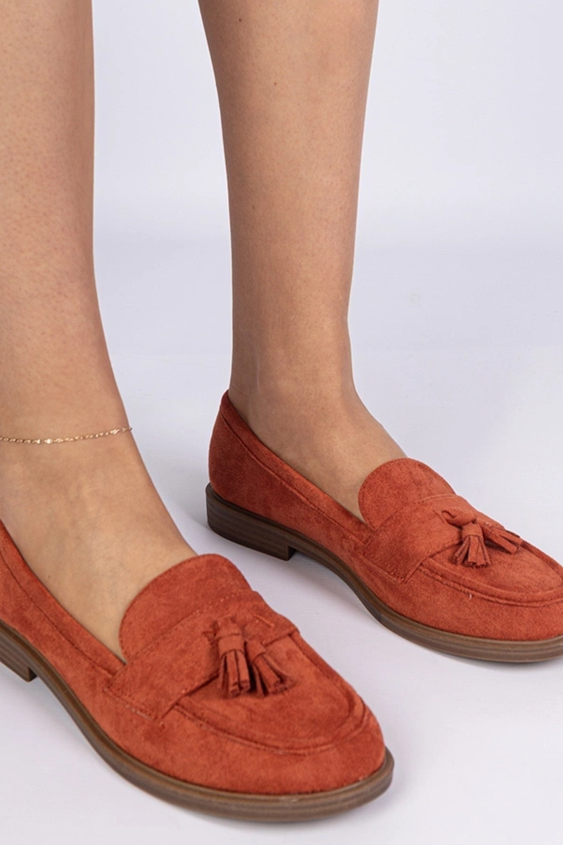 Oranžīgi sieviešu mokasīni no mākslīgā zamša ar pūkām Marimel