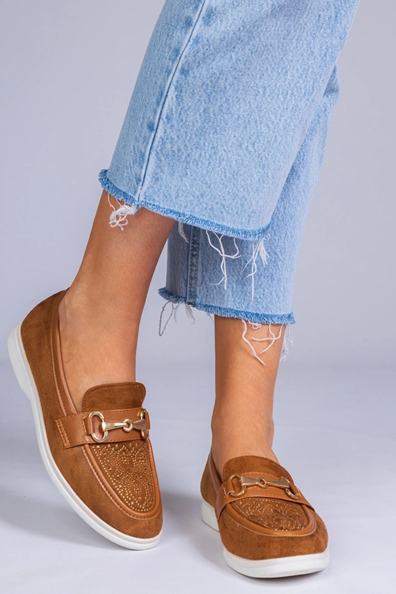Rudi mokasīni no mākslīgās ādas ar rotājumu, „Kalenda"