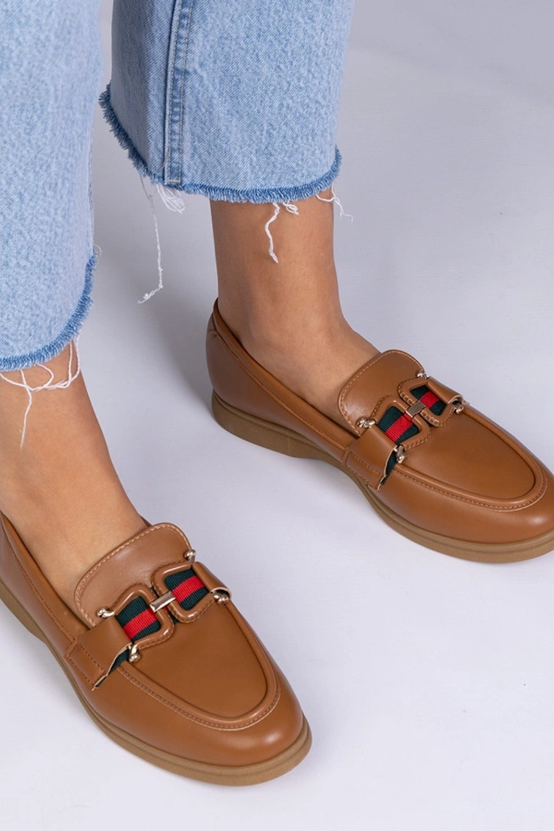 Smilšu krāsas mokasīni no mākslīgās ādas ar rotājumu, „Kalenda"