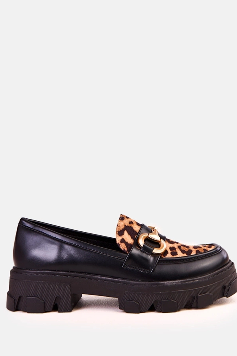 Melnas mokasīni ar leoparda raksta akcentu un zelta rotājumu Ruben