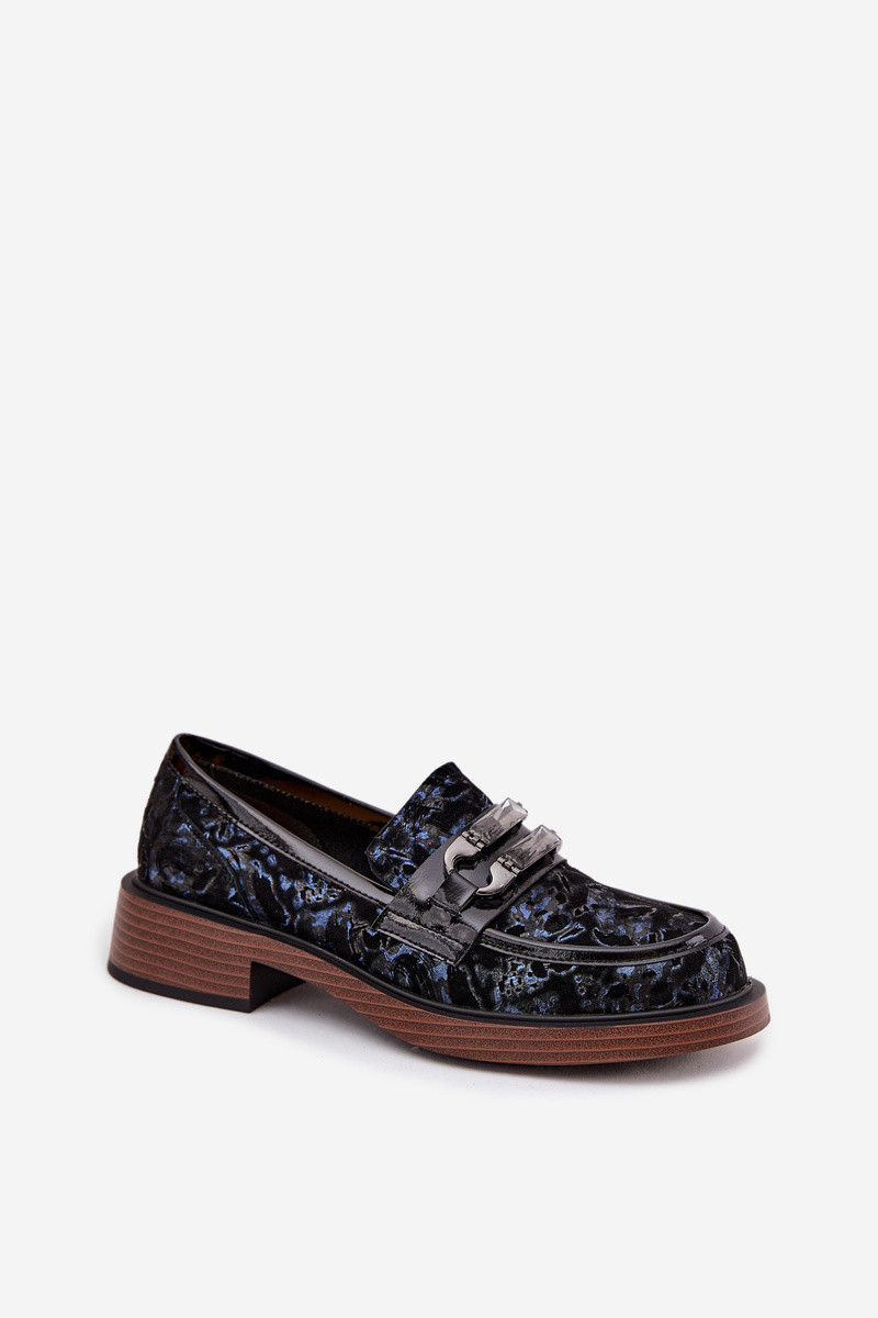 Mākslīgās zamšas sieviešu mokasīni ar grezniem elementiem, D&A MR52-178, melnā krāsā