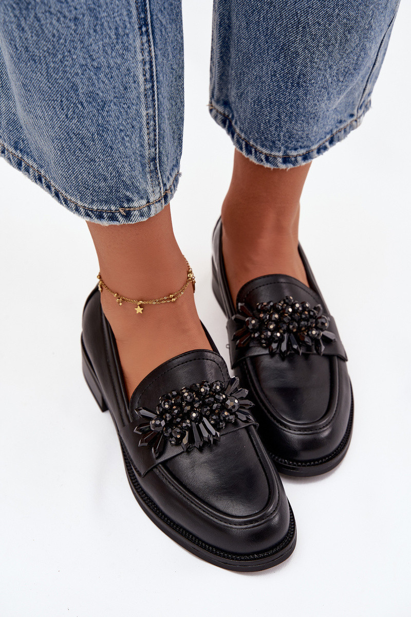 apavi sieviešu mokasīni ar ornamentiem melnas krāsas Murelle