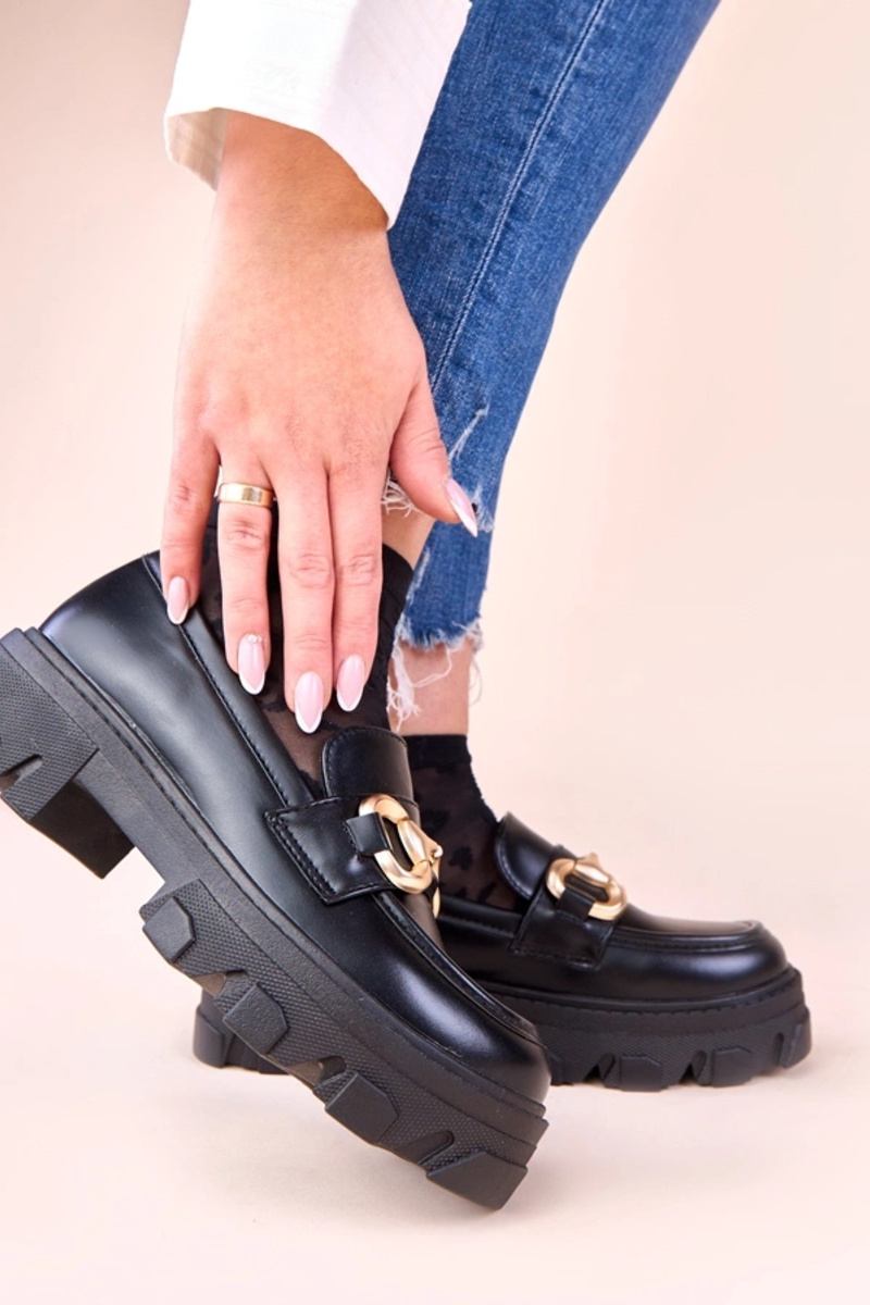 Melnas mokasīni ar zelta rotājumu Ruben