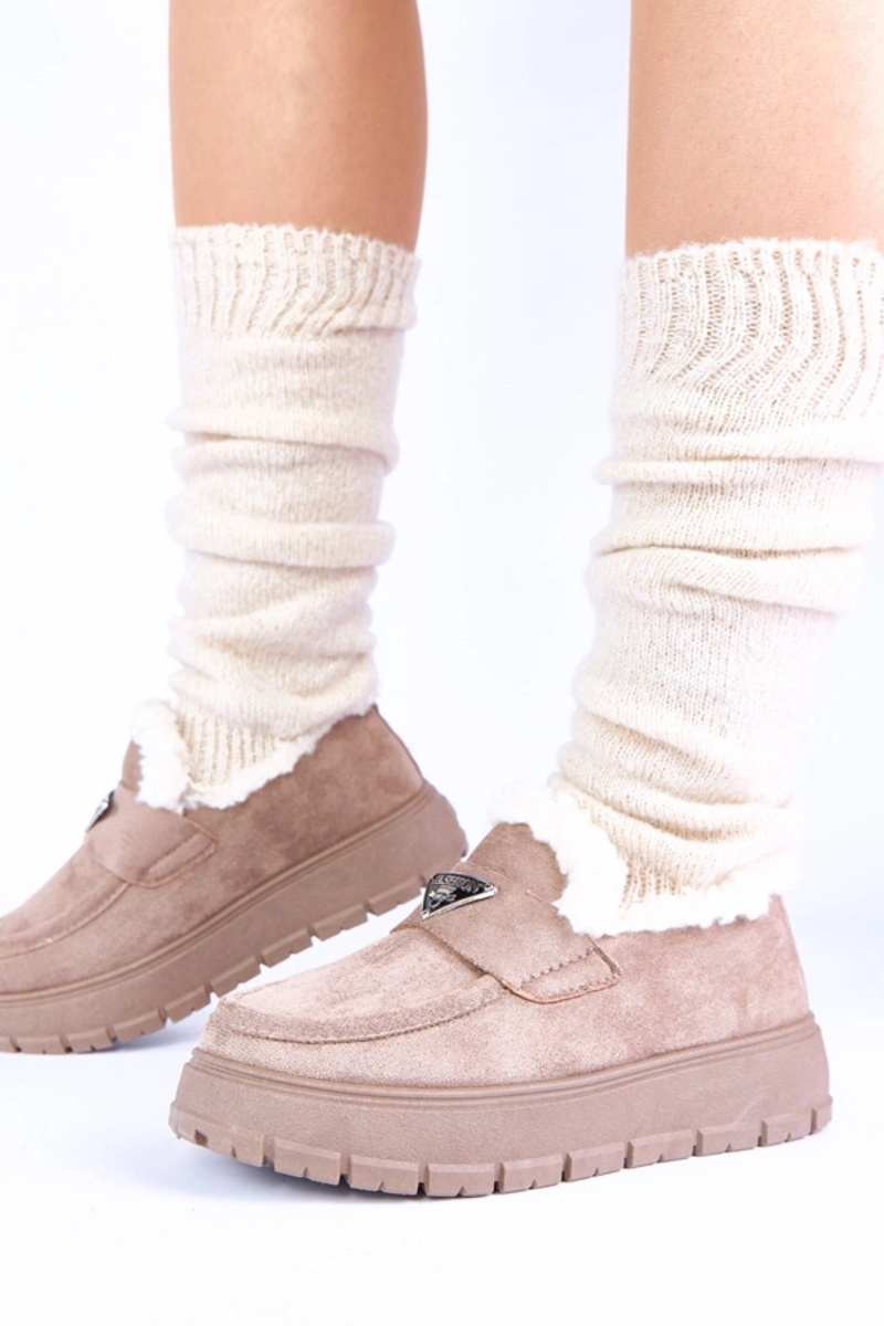 Tumši smilšu mokasīni uz platformas ar kažokādu Kirby