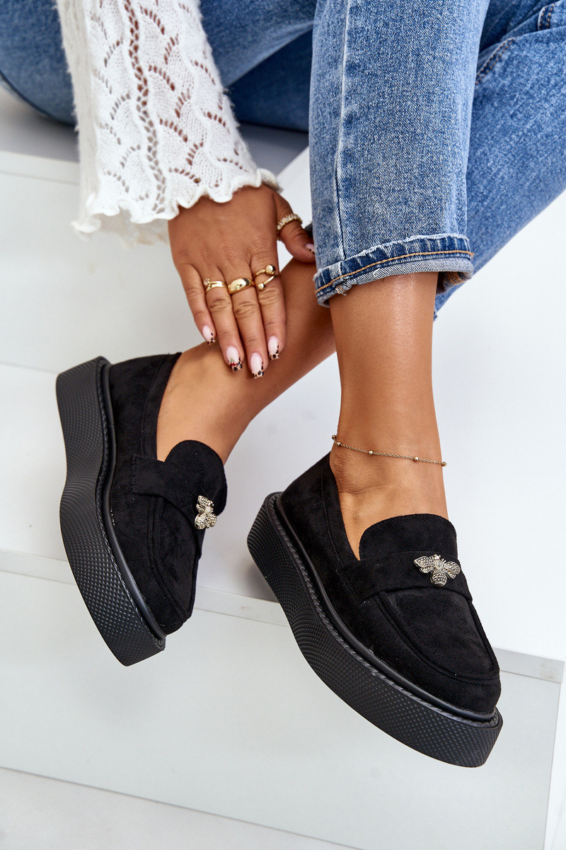 Sieviešu mokasīni ar apzeltītu zoli melnas krāsas Erithine