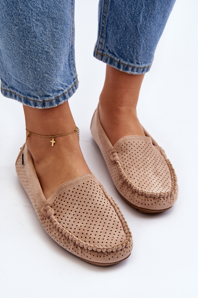 Matuļi sieviešu mokasīni ar caurumiem smilšu krāsā Rasirna