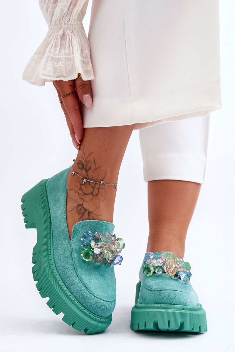 Sieviešu mokasīni ar mākslīgiem kristāliem Zaļas krāsas Avril