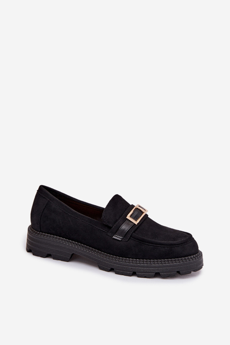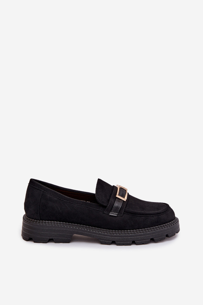 Sieviešu mokasīni ar zelta sprādzēm melnā krāsā Mirelva