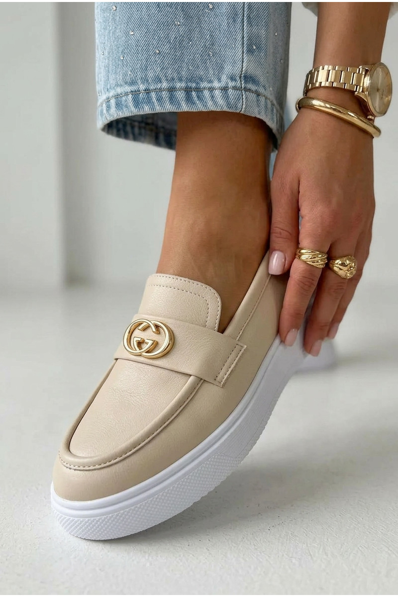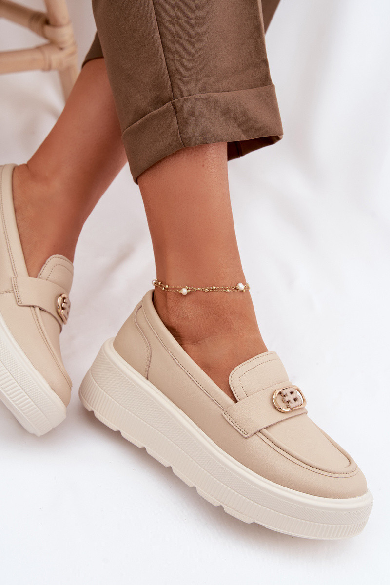 Sieviešu mokasīni ar platformu no ādas Vinceza 39974 smilšu krāsā