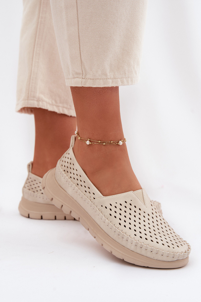 Sieviešu mokasīni ar caurumiem Sergio Leone MK099H smilšu-zelta krāsā
