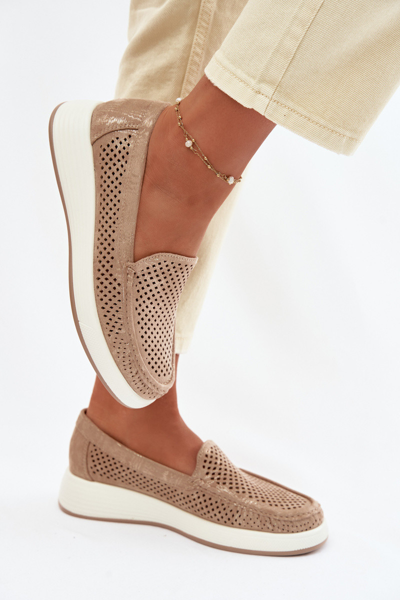 Sieviešu mokasīni ar caurumiem Sergio Leone MK097H smilšu krāsā