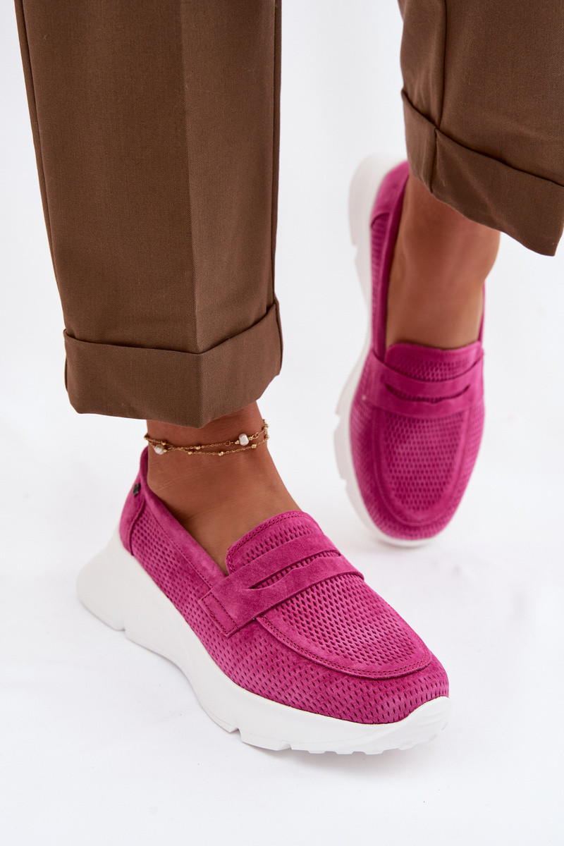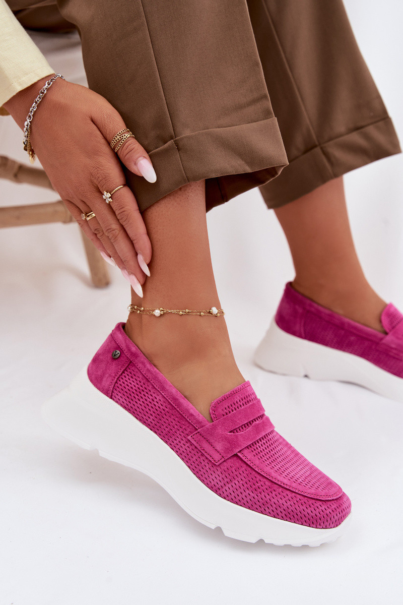 sieviešu mokasīniIeslēgtsturalnego zamšādasu ar platformu Vinceza 79626 rozā krāsas