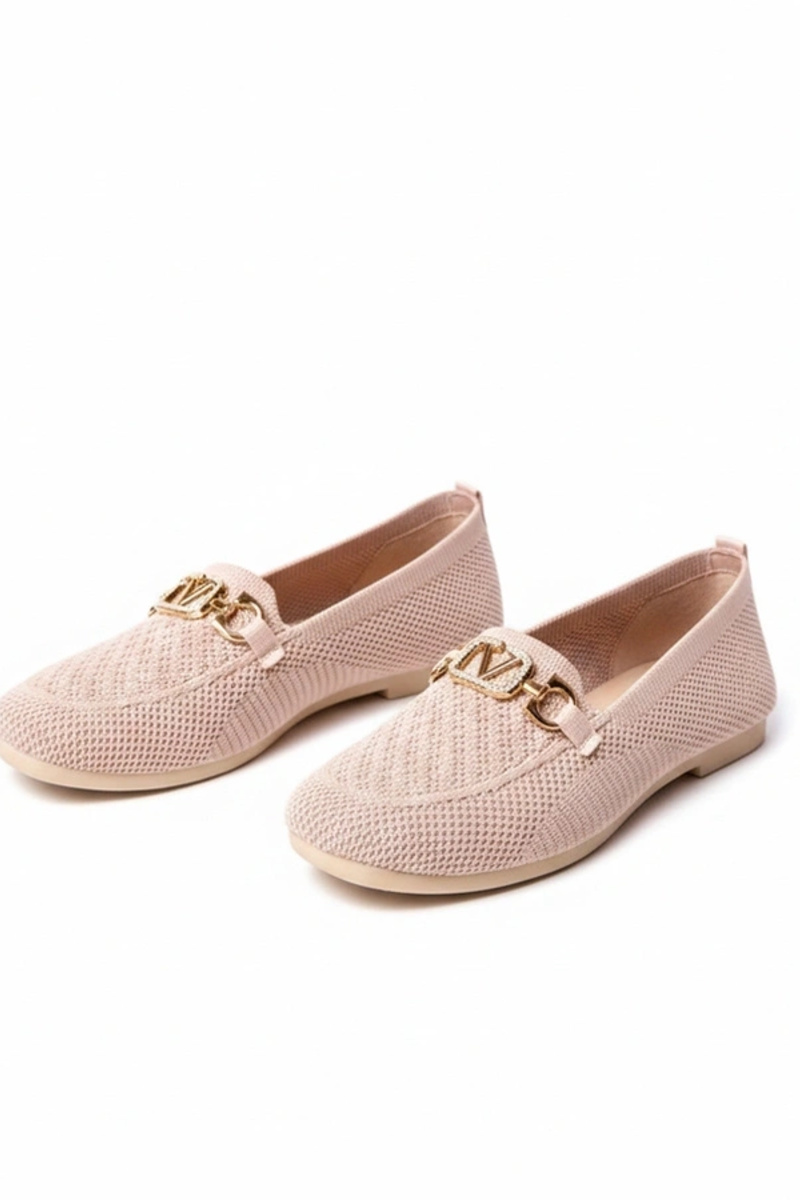 Rozā auduma mokasīni ar zelta dekorāciju Mathilde
