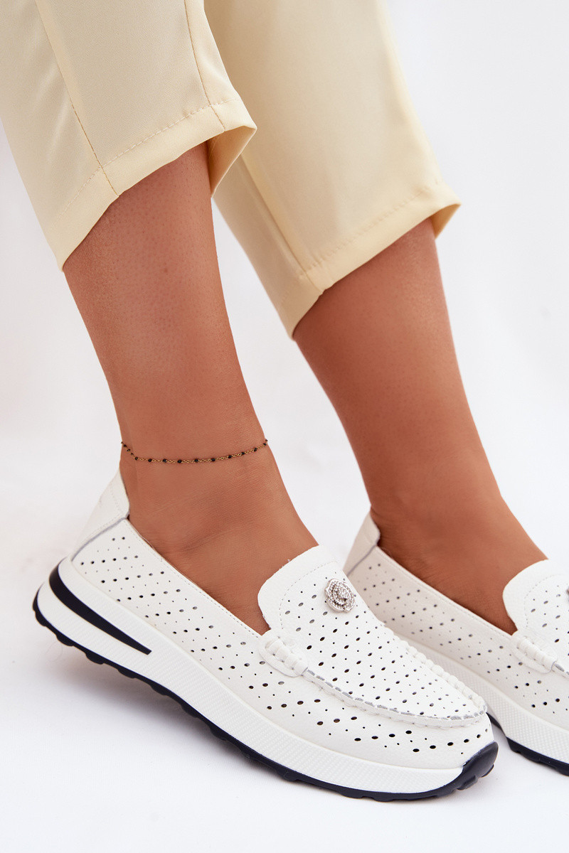 Ažūrs sieviešu mokasīniIeslēgtsturalnej Skóry baltas krāsas Kemela