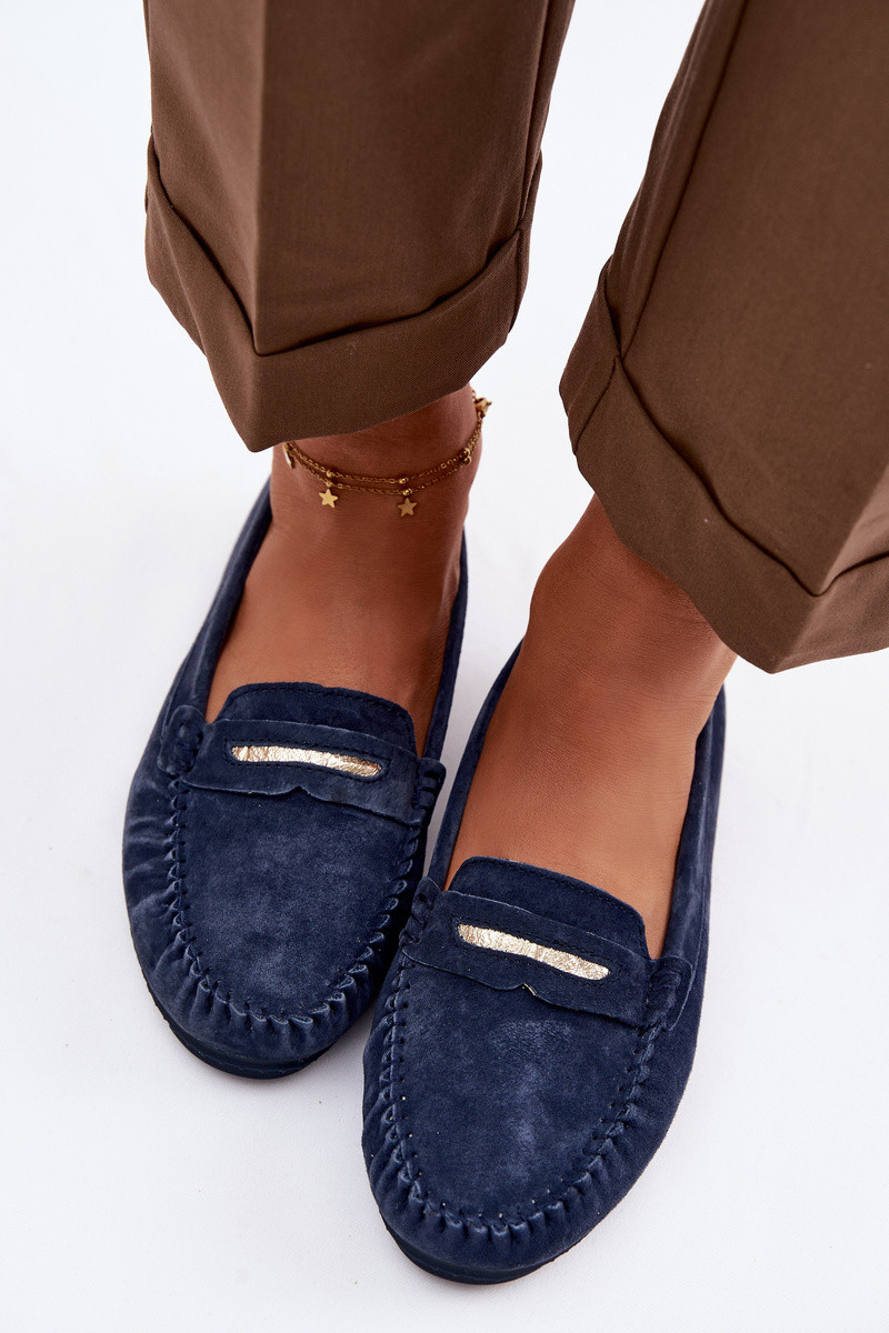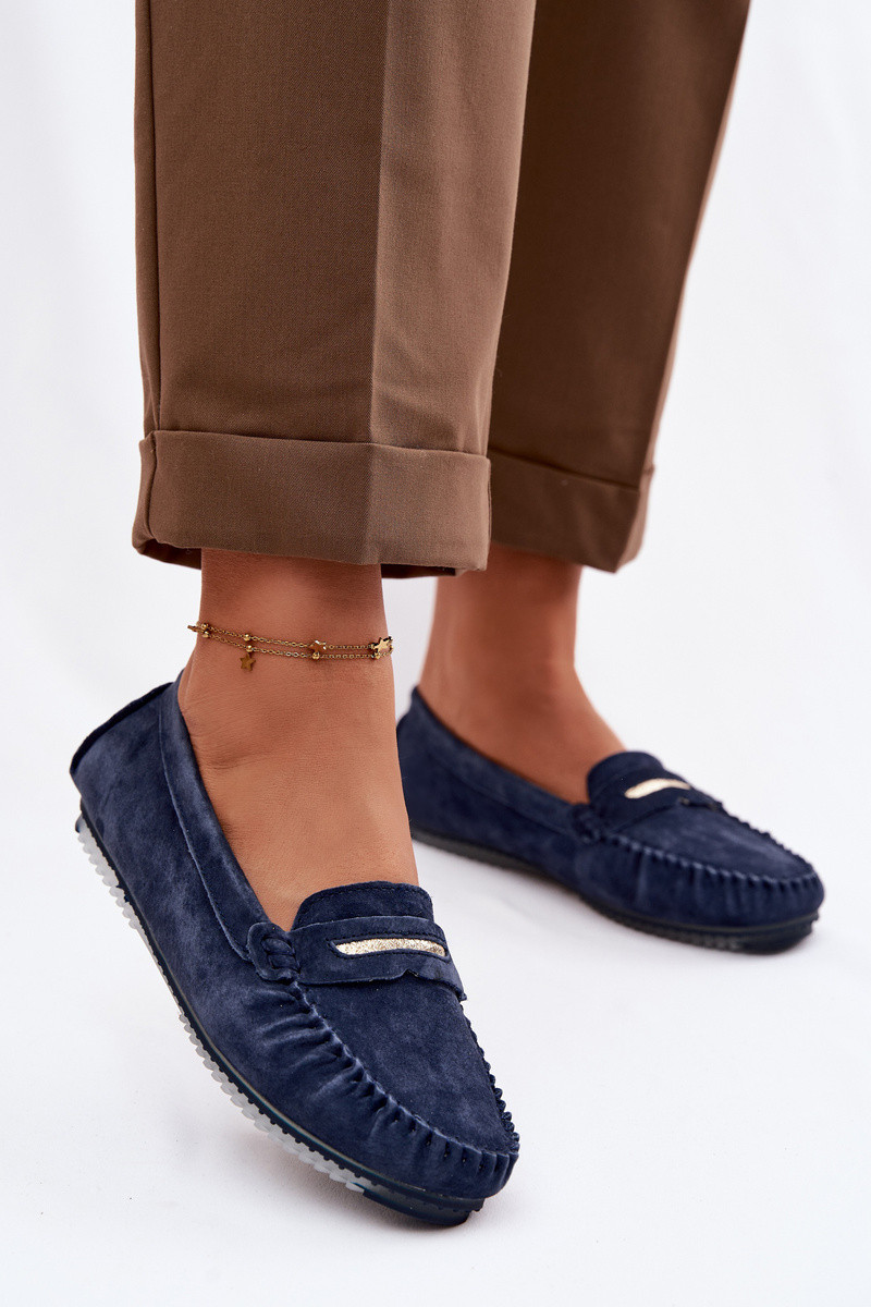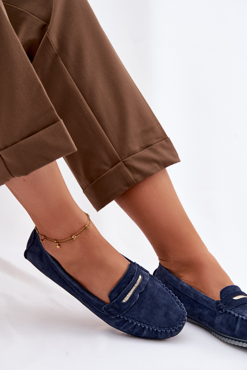 zempapēžu sieviešu mokasīniIeslēgtsturalnego zamšādasu S.Barski LR61-7029 tumši zilas krāsas