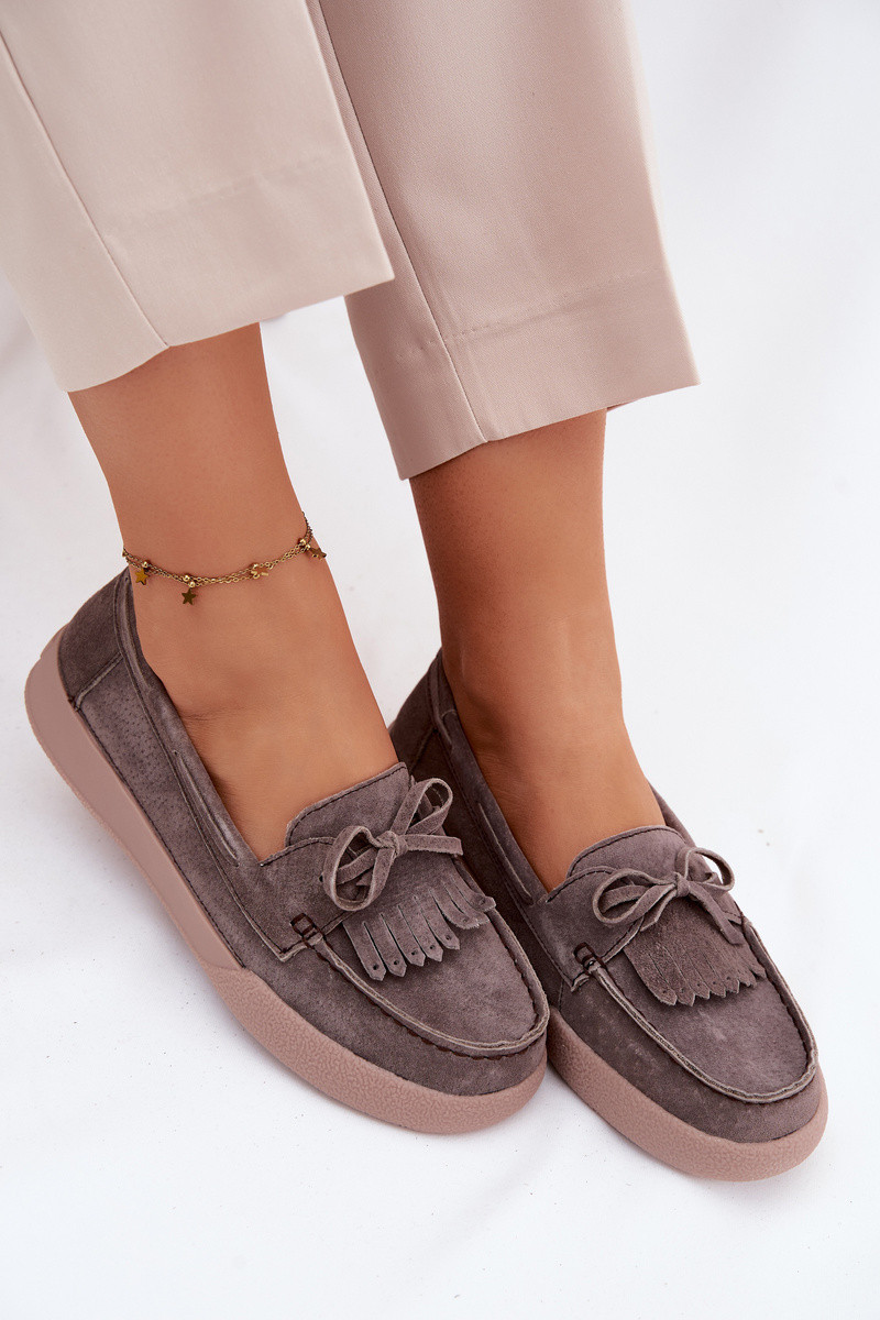 sieviešu mokasīniIeslēgtsturalnego zamšādasu ar bantītēm Un bārkstis Vinceza 93223 brūnas krāsas