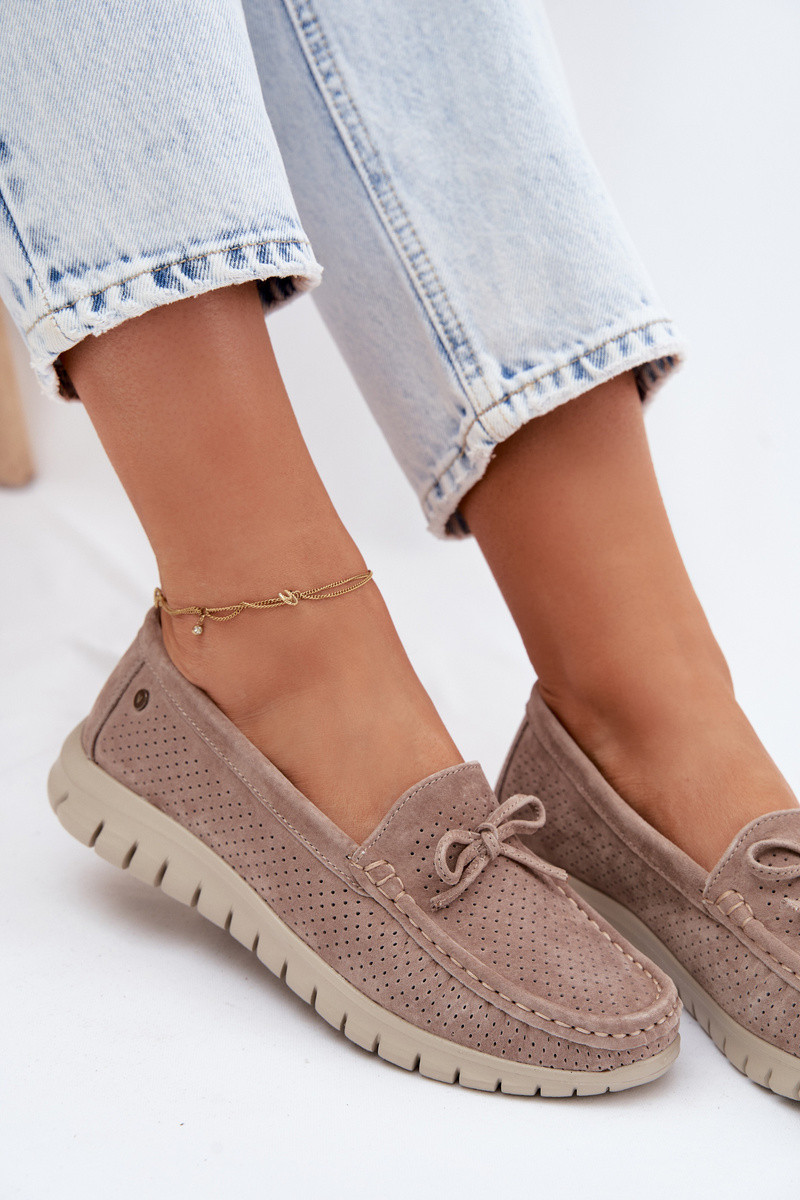 sieviešu mokasīniIeslēgtsturalnego zamšādasu ar bantītēm Vinceza 95401 smilšu krāsas