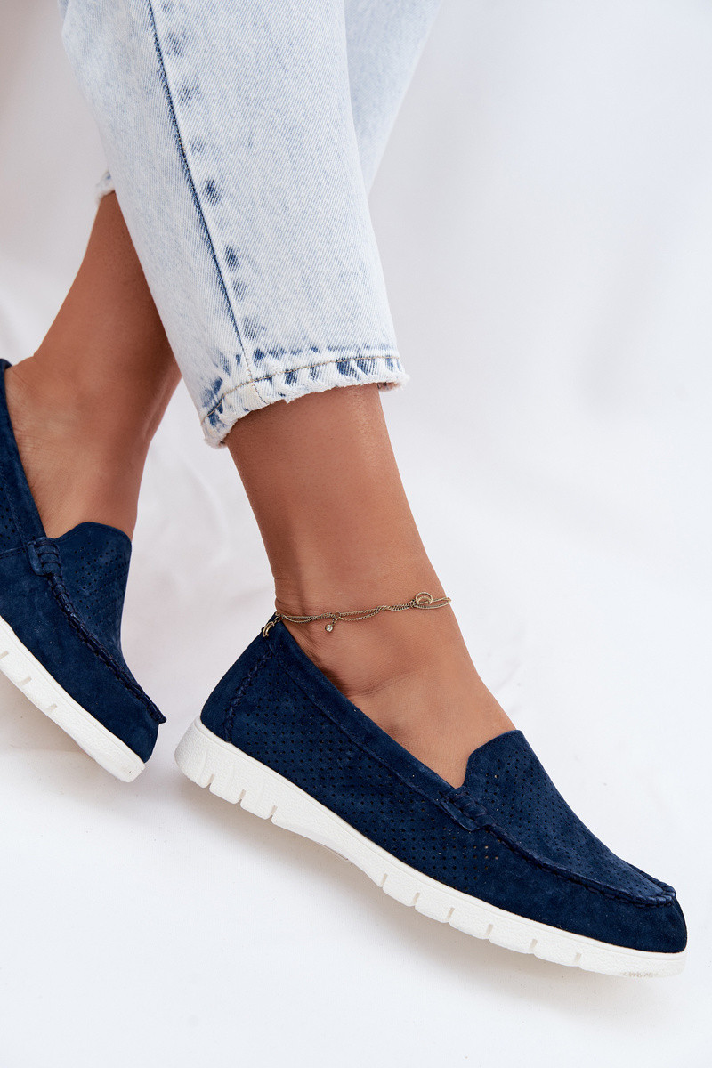 sieviešu mokasīniIeslēgtsturalnego zamšādasu Vinceza 95360 tumši zilas krāsas
